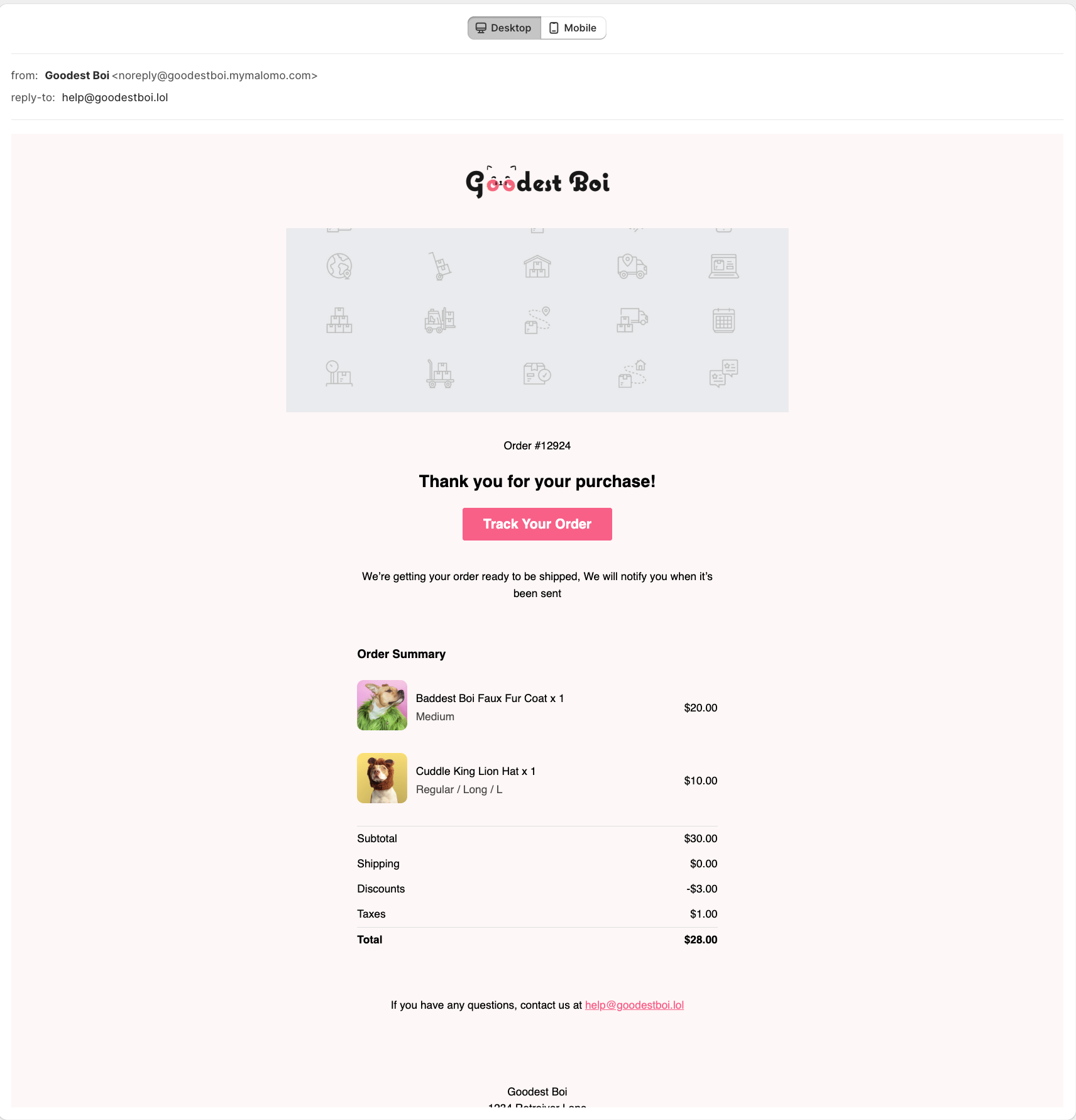 Learn more about how to send Malomo Transactional Email order notifications with these articles: